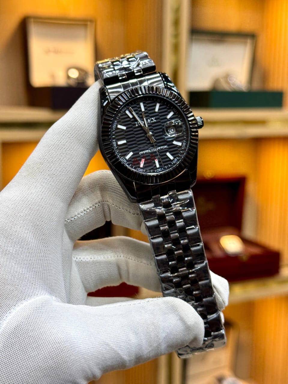 • Exquisite Black Dial: Features a unique horizontal "waffle" texture that catches the light from every angle.