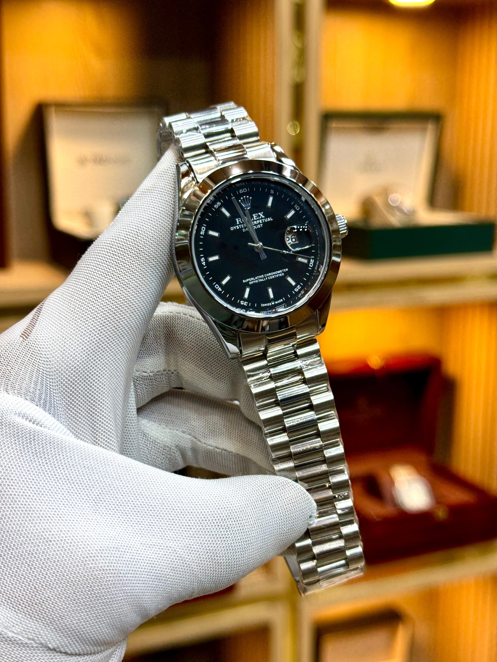 Expertly crafted, the Rlx Datejust Men's watch exudes sophistication and style. With a sleek steel chain and secure crown lock, this watch is perfect for everyday wear. Featuring a 30 mm case and water resistance, it is both functional and fashionable for any occasion.